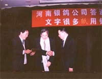 河南省印刷物資總公司黨委李書記、江西印刷廠代表等客戶代表先后發(fā)表了熱情洋溢的講話,對銀鴿的未來和發(fā)展、產品質量等提出了中肯的意見和建議。