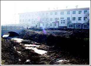 鎬京中學門前受到嚴重污染的太平河。記者李福民攝