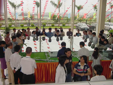 首先參觀世界工業(yè)原料交易中心“深圳華南城”,華南國際工業(yè)原料城位于深圳平湖物流基地園區(qū),規(guī)劃占地面積約1.5平方公里,總建筑面積約220萬平方米,總投資約26億元(人民幣),由佳寧娜集團(tuán)、民生集團(tuán)、香港建業(yè)五金塑膠廠有限公司、力嘉國際集團(tuán)和京暉國際五家公司共同投資,在五年內(nèi)全部建成。 一行參加了華南城項(xiàng)目推介會(huì)及實(shí)地建筑物觀察。
