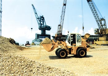 中山碼頭上繁忙的桉樹片裝卸現(xiàn)場