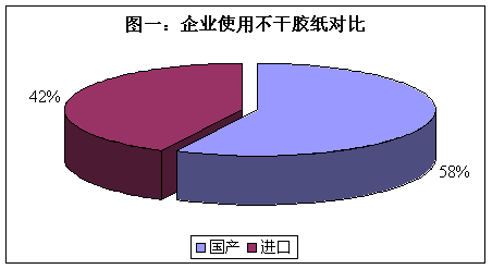 從本次網絡調查的數據顯示,有大約42%左右的企業主要使用進口的不干膠紙,而有58%的企業則主要使用國產品牌的不干膠紙。