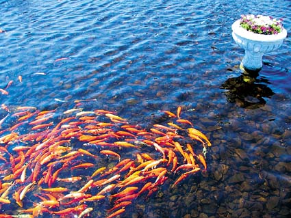 今天下午,參觀團還實地考察了海南金海紙漿廠的工作流程。在廢水處理處,看到紅色的金魚在紙漿廠經過處理后排出的廢水里歡快地游動(如圖),周文彰十分高興,他讓工作人員裝了杯廢水仔細地觀察。在確認廢水不會破壞環境后,周文彰對廠方在環保方面付出的努力表示了贊賞。