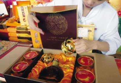 而2003年中秋節(jié),國內(nèi)更曾有標(biāo)價(jià)31萬元的“中秋月餅加住房”;2004年中秋節(jié)曾有賣價(jià)18萬元、內(nèi)含一件純金金佛的月餅禮盒。此外,內(nèi)有高檔洋酒、高檔茶葉以及鍍金刀叉等物品的高檔月餅禮盒比比皆是。
