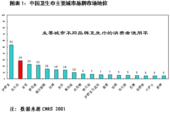 衛生巾不同城市的品牌市場位置