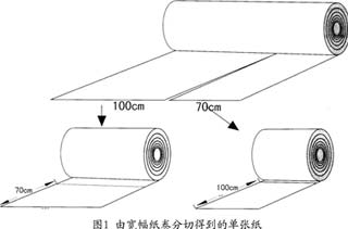 紙張是從一個寬100cm的紙卷上裁切得到的,而紙張的短邊(70cm邊)與紙張絲縷方向平行,這種紙張我們可以稱其為寬帶紙,或者說這種紙張的絲縷方向是短邊方向。