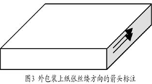 在紙張的外包裝上一般也會利用這種方法來表示所包紙張的絲縷方向,如圖3所示。