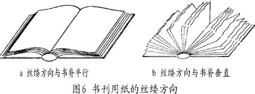 如圖6所示,要求紙張的絲縷方向和書脊的方向平行,這樣書本在展開時就會很平服,便于閱讀,如圖6a所示,否則就會如圖6b所示。