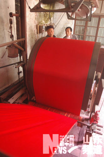 新華網(wǎng)山東頻道11月2日電 被譽(yù)為“魯南紅紙第一村”的山東省郯城縣勝利鄉(xiāng)沙沃村,刷制紅紙已有300多年的歷史,全村571戶曾家家染缸紅,戶戶紙兒響。去年初,當(dāng)?shù)卣騽堇麑?dǎo),協(xié)調(diào)信用社資金扶持,成立了12家紅紙公司擴(kuò)大生產(chǎn)規(guī)摸。目前,全村年生產(chǎn)紅紙3000余萬張,銷售額達(dá)820多萬元,暢銷 河南、江蘇、安徽等20多個(gè)省市,僅此一項(xiàng)人均增收1700元,成為遠(yuǎn)近聞名的富裕村。(房德華 杜明函 攝)