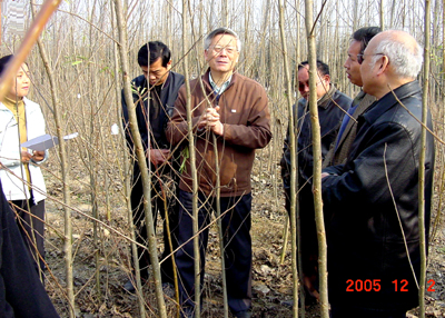 北京林業大學校長尹偉倫考察三倍體毛白楊培育基地