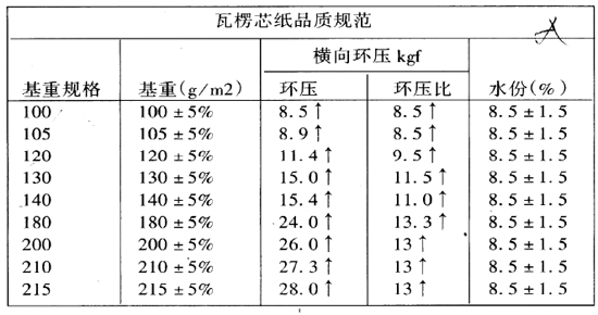 瓦楞芯紙的規格見下表:
