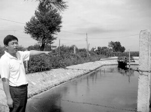 陳隊長領著記者來到被雜草和大片玉米地包圍著的廣進公司兩座露天污水處理池,緊挨著這兩池水,有一條明渠排水溝。