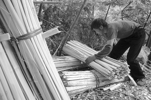 對(duì)開6到8片打去竹節(jié),包扎成捆
