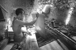 江西省上猶縣箬子嶂至今完整保存著1900年前的手工造紙工藝。在這個(gè)離縣城40多公里的深山村落,用于手工造紙的紙棚大多建在郁郁蔥蔥的竹林里。這些紙棚設(shè)施簡(jiǎn)陋,有的屋頂上只蓋著杉樹皮,由于年代久遠(yuǎn),長(zhǎng)滿了青苔。過(guò)去這里幾乎每家每戶都有紙棚,做紙是主要的經(jīng)濟(jì)來(lái)源。如今,年輕人大多出門打工,精通這門手藝的人也就越來(lái)越少了。