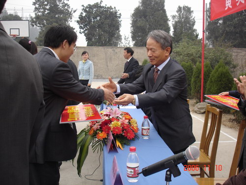 金東公司總經理吳省芳向學校代表捐贈