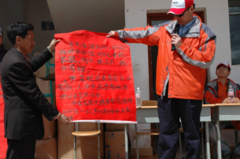 為了給孩子們一個驚喜,志愿者們為老師和孩子們準備了書包、鉛筆、作業簿等文具以及帽子、T恤等衣物。當孩子們接過志愿者手中的書包時,那驚喜而羞澀的神情總是令人那么的難忘。