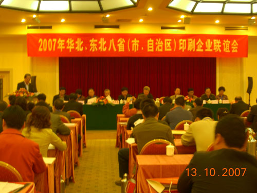 2007年10月12日至15日,“2007年華北、東北八省(市、自治區(qū))印刷企業(yè)聯(lián)誼會”在天津召開。北京市、天津市、河北市、山西市、內(nèi)蒙古自治區(qū)、遼寧省、吉林省、黑龍江省印刷協(xié)會的理事長、秘書長及印刷經(jīng)理、廠長等200余人出席會議。