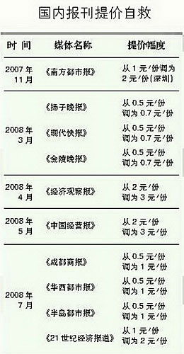 與秦先生所說的狀況相類似,雖然一些報社已經或正在醞釀提高發行價格,但由于提價背后存在著發行量下降的風險,許多報社對此十分謹慎,有些只能被動承擔新聞紙價格上漲帶來的成本壓力。