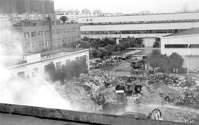 從車間樓頂能看到起火處是一間約500平方米的成品庫房,此時已經被大火燒得東倒西歪,成千上萬盒紙杯被燒成灰燼。由于濃煙還在滾滾不斷地往外冒,很有可能殃及附近車間,現場的消防車立即向成都消防支隊請求增援,隨后雙流消防大隊等調集水車和3臺挖掘機進入現場,協助滅火。又經過半小時的奮力撲救,濃煙漸漸消失,現場指揮組織挖掘機清理庫房,排除明火再次躥起的可能。