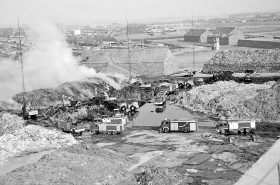 著火的葦場原料草堆位于公司的東側,一條場內鐵路運輸專用線將葦場的葦垛分成東西兩部分,東部的10多個葦垛仍在燃燒,火苗不到1米高。