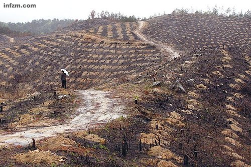 要是天晴,雇工汪緒平多半就在山坡上挖樹坑。兩個(gè)月前,這里,紅安縣七里坪鎮(zhèn)七家畈村,還是一片馬尾松與杉樹混雜的原生林。為了省錢趕工,造林老板讓汪緒平上山放火,現(xiàn)在,滿目都是被大火燒焦的殘枝和黑土。