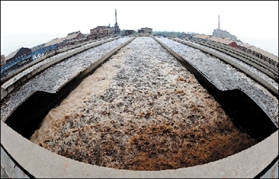 7月6日,營(yíng)口造紙廠被環(huán)保部“掛牌督辦”。12日,記者來(lái)到緊臨大遼河北岸的造紙廠,能清楚地聽(tīng)到機(jī)器轟鳴,自備電廠的煙囪也正冒煙。黑色廢水在設(shè)施內(nèi)嘩嘩流淌著,泛著白色的泡沫。管理設(shè)備的工人透露,污水處理廠的進(jìn)出水量為每小時(shí)5000噸左右。
