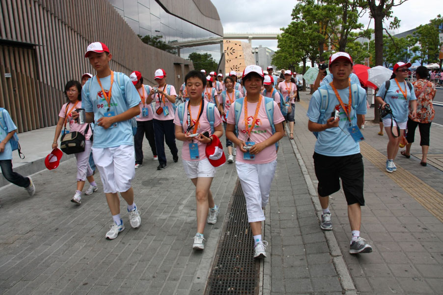 在世博園內,這些來自偏遠地區的中學生,世博從夢想變成了眼前的現實,他們一路上一直問個不停,用紙筆做著筆記,用年輕的心靈感知所見到的一切,世博“自然、環保、和諧、創新”的精神,更悄然融入了他們五彩的憧憬。(黃奕聰慈善基金會)