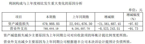 除此之外,“資產(chǎn)減值損失”和“營(yíng)業(yè)外支出”兩項(xiàng)也是提升凈利潤(rùn)的重要因素。