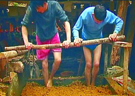 把竹子搗成泥 本組圖片由廖小姐攝于奉節