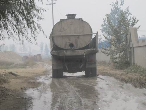 按照村民的提示,記者來到大冊營鎮進行調查。在大冊營鎮的南北主干道上,不時會有運輸污泥的罐車通過。這些罐車到哪里去,記者決定搞個清楚,找到污泥排放地點。