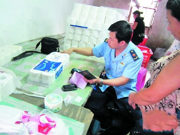 10月12日,記者與海口市濱海工商所執法人員,在海口紙產品銷售較為集中的海口市新港水產碼頭綜合批發市場,查出海口振海紙品廠旗下6種牌子衛生紙沒有產品合格證,并且質量普遍很差。13日,記者前往該廠暗訪時看到,該廠生產環境極其臟亂,雖然生產的是不需經衛生許可的廁所用紙,但在外包裝上卻沒有按照國家有關規定進行明確標識。
