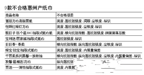 廣東省工商局近日通報(bào)全省流通領(lǐng)域紙巾紙質(zhì)量監(jiān)測(cè)情況,抽檢結(jié)果顯示超過七成不合格,其中9款惠州產(chǎn)紙巾產(chǎn)品被檢出使用熒光增白劑(有潛在致癌危險(xiǎn)的化學(xué)品)、細(xì)菌菌落總數(shù)超標(biāo)等問題,被列入省工商局抽檢黑榜遭曝光。