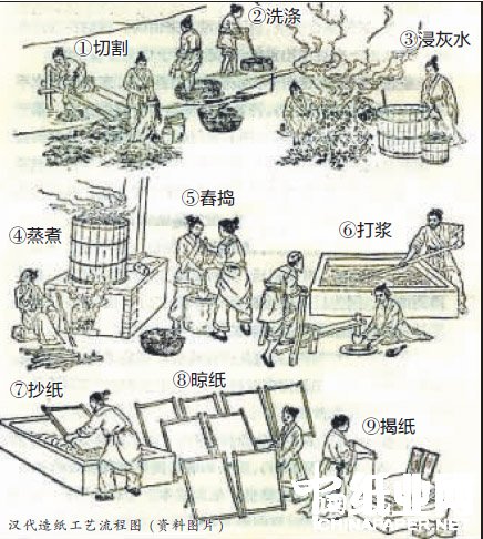 漢代造紙工藝流程圖(資料圖片)
