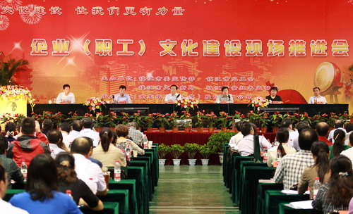 9月14日上午,在金東紙業第二值班區員工活動中心隆重召開了鎮江市企業(職工)文化建設現場推進會,市委宣傳部部長張洪水、市人大副主任總工會主席陳蘇、市委副秘書長杭祝鴻等領導出席會議,鎮江各縣市區有近二百家企業事業單位派員參加推進會。