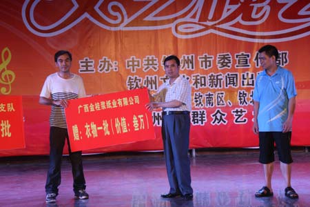 整整兩個小時的晚會,表演者認(rèn)真投入,觀眾不吝鼓掌,精彩的節(jié)目和場面還吸引了附近許多市民前往觀看。廣西金桂漿紙業(yè)有限公司為殘疾人朋友捐贈了一批價值3萬元的衣物及乒乓球臺。(李津藝)