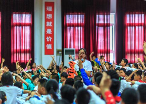 上半部分是精彩的環境教學。芬歐匯川的志愿者王鳳采用我問你答的授課方式與孩子們拉近距離,帶著孩子們一起探索芬歐匯川的《森林故事》,結合案例視頻材料、公益廣告啟發并發起互動討論《低碳生活》的綠色可持續發展理念,用自己的愛心和信心感染、激勵在場的每一位學生,將綠色的種子播灑到每個純真孩子的心中。志愿者們還與兩校同學一起唱跳芬歐匯川版愛水護水節水版《小蘋果》,將現場氣氛推向高潮!