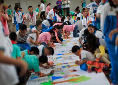 下半部分“能干的花兒與少年”互動活動中,芬歐匯川的志愿者們與常熟市特殊教育學校、星城小學的同學們共繪“美麗的家鄉常熟”長卷作品,一起包粽子、做壽司感受端午傳統文化,使兩校的孩子有機們會一起學習,在活動中相互幫助,增進交流,傳遞友誼和愛心。