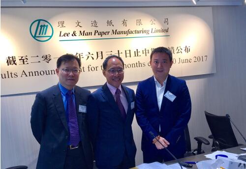 圖左起為理文造紙財(cái)務(wù)總監(jiān)張國強(qiáng)、主席李文俊及首席執(zhí)行官李文斌