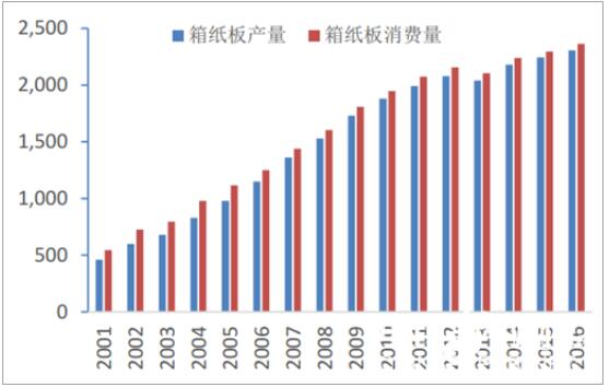 國(guó)內(nèi)箱板瓦楞紙三大龍頭為理文造紙、玖龍紙業(yè)、山鷹紙業(yè),相應(yīng)產(chǎn)量規(guī)模大約為540、340、340萬(wàn)噸,全國(guó)瓦楞與箱板紙產(chǎn)量規(guī)模約為4000萬(wàn)噸左右,CR3約為25%。目前我國(guó)紙及紙板消費(fèi)增長(zhǎng)大幅放緩,新聞紙需求下滑、銅版紙、雙膠紙需求增長(zhǎng)停滯,受電商發(fā)展的拉動(dòng),瓦楞箱板紙需求近年來(lái)持續(xù)增長(zhǎng),2013年以來(lái)年均復(fù)合增速大約為4%。瓦楞、箱板紙上游原材料為木漿、廢紙,下游需求主要來(lái)自瓦楞包裝企業(yè),產(chǎn)品服務(wù)于專業(yè)紙箱廠、食品飲料、信息電子、日化、醫(yī)藥等行業(yè)。