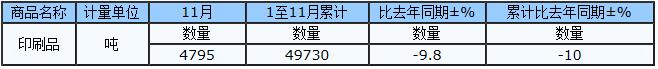 2017年1-11月中國(guó)印刷品進(jìn)口量49730噸