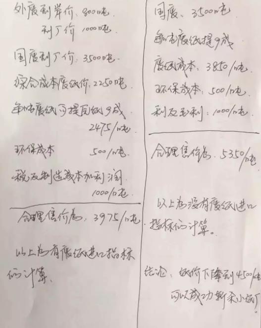 如上報價單,有行業朋友說比同行至少低了10%的,有說平米價差達到0.50元的?傊,這是一張石破天驚的行業超低價。其報價含稅,但做貨前提是——必須是預付款! 筆者做了一下測算,如果五層紙板(160+90+50+90+160)價差0.50元,其原紙均價會比一般紙板廠低多少? 上述紙板五層克重約622g,在報價毛利設定為15%的情況下,紙板價差0.50元,就相當于原紙價差約700元。 要知道,玖龍等大造紙廠,因為有便宜的外廢,按外廢、國廢各占50%的比例,與全部用國廢的造紙廠原紙售價之間的差價,會達到1400元左右。