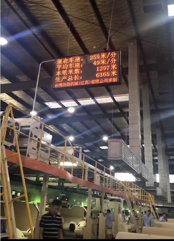 該瓦楞紙板生產(chǎn)線是由協(xié)揚(yáng)機(jī)械(江蘇)有限公司制造、安裝,兩臺(tái)正壓卡匣單面瓦楞機(jī),配置A、B、E三種楞型,可切換生產(chǎn)AB、BE、A、B、E等瓦型組合的三、四、五層紙板。在滿負(fù)荷運(yùn)作的情況下年產(chǎn)值可達(dá)4.5個(gè)億。