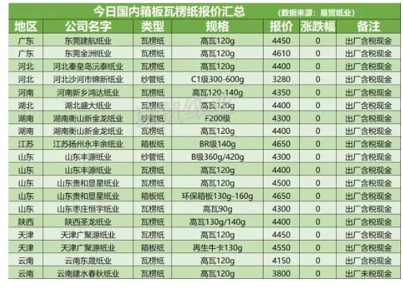 瓦楞箱板行情預測 上周國內廢舊黃板紙價格開啟上漲走勢,漲幅最大的地區主要是原紙出貨好轉的福建和華東地區,以及受大雨天氣影響的河北一帶,但終端需求低迷不振,原紙仍以降庫存為主,價格浮動不大。隨著月底玖龍、理文和山鷹規模紙企輪流停機檢修開始,或將緩解目前的供需矛盾,或支撐本周瓦楞箱板紙價走穩。
