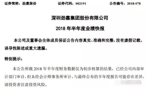 7月31日,深圳勁嘉集團股份有限公司(下稱:勁嘉股份)發布了2018年半年度業績快報。報告期內,上半年營收為16.09億元,同比增長13.14%;凈利潤3.79億元,同比增長25.06%。  2018年1-6月份,勁嘉股份主要財務數據 報告顯示,報告期內,公司實現營業總收入160,880.16萬元,比上年同期增長13.14%;實現營業利潤50,296.96萬元,比上年同期增長26.25%;實現利潤總額50,279.28萬元,比上年同期增長22.48%。 實現歸屬于上市公司股東的凈利潤37,901.70萬元,比上年同期增長25.06%;實現歸屬于上市公司股東的扣除非經常性損益的凈利潤36,092.41萬元,比上年同期增長24.80%。
