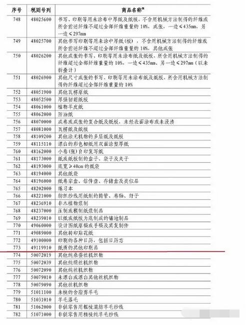 在加征25%的產(chǎn)品名單中,包括了新聞紙、部分文化紙、瓦楞原紙、箱板紙以及部分紙制品等。這些產(chǎn)品原來(lái)的關(guān)稅多在5%-7.5%。