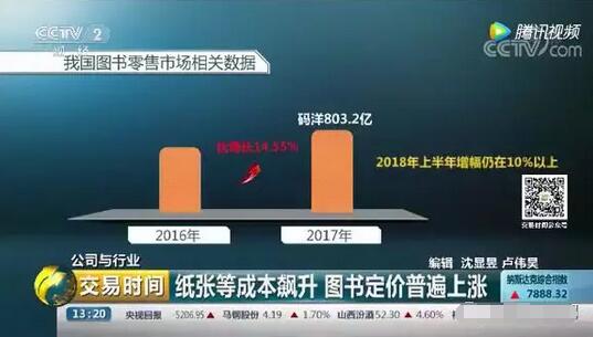 日前,央視財經頻道《交易時間》欄目推出《紙張等成本飆升,圖書定價普遍上漲》報道,指出在紙張、人工、物流成本飛漲的情況下,圖書定價不漲,出版社只能虧本。 紙張等成本飆升,圖書定價普遍上調20-30% 去年下半年開始,我國的圖書價格出現了一股明顯的漲價風。一本30多萬字的新書,定價普遍超過50元/本。進入書店,一本書的定價逼近甚至超過100元的并不少見。
