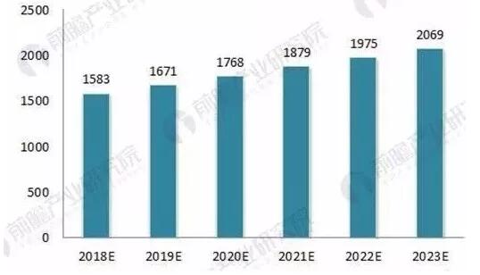 智能包裝是指通過創新思維,在包裝中加入了更多機械、電氣、電子和化學性能等的新技術,使其既具有通用的包裝功能,又具有一些特殊的性能,以滿足商品的特殊要求和特殊的環境條件。其中涉及到保鮮技術、水溶膜包裝技術、二維碼技術、包裝性與結構創新技術、便攜包裝技術、紋理防偽技術、磁共振射頻防偽識別技術、食品安全溯源方案技術等。 近些年來逐漸備受矚目的印刷電子技術,就是是將傳統的印刷工藝應用于制造電子元器件和產品,其最大特點是它們不依賴于基底材料的導體或半導體性質,可以以薄膜形態沉積到任何材料上。在絕大多數的智能包裝應用中,都可以通過整合印刷電子技術,實現更多“智能”屬性,例如在倉儲、運輸、銷售過程中的質量信息記錄與表現等,并具備柔性、環保、低成本等優勢。 我國是制造業大國,每年生產出來的工業品大約是全球總量的30%。我國包裝行業的銷售總額在2013年就已經超過萬億,如今更是達到了1.7萬億的級別。如果包裝行業能夠大規模使用智能包裝技術與產品,整個智能包裝行業的增長幅度將會十分巨大。 據相關數據顯示,2016年我國智能包裝的市場規模達到1366.53億元,2017年達到1488.09億元,同比增長8.90%;目前智能包裝細分市場規模最大的為RFID市場,2017年RFID市場規模已達到752.4億元;未來,隨著材料科學、現代控制技術、計算機技術與人工智能等相關技術的進步,以及中國市場化進程的加快,國民收入的提高和全球品牌商品的進入,一個相當大的零售和消費市場將在中國形成,并且快速增長。市場的快速形成與成長,勢必拉動智能包裝的迅猛發展。預測,到2023年,中國中國智能包裝行業市場規模有望突破2000億元。 2018-2023年中國智能包裝行市場規模預測(單位:億元)