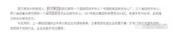 工商局發布的文件也指出:因不斷加大科研投入,勝達集團目前已擁有一個國家級技術中心“中國紙制品研發中心”,三個省級技術中心、兩個省級重點研究院和一個省級高新技術企業研究中心,2017年勝達集團科研費用達8.8億,申請專利70余項,呈現強大的設計研發實力。