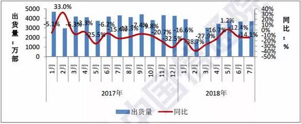 6家預收款下降的酒企,降幅均超過30%,最高降幅達到80%。作為酒企龍頭的茅臺,今年上半年預收賬款為99.40億元,較上期期末數減少31.11%;江蘇區域白酒今世緣預收賬款下降70%,從8.15億元降至2.37億元,今世緣稱主要原因是季節性因素。 智能終端:上半年手機銷量銳減17% 手機做為智能終端的主力,今年前七月銷量令人憂心。據中國信通院最近發布的數據顯示,2018年1-7月,國內手機市場出貨量2.33億部,比下降17.3%。