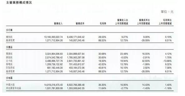 日,晨鳴紙業公布了一份2018中期業績,總體業績喜人。然而,8月27日,《新財金觀察》對外發布一篇標題為《魯企“炒房一哥”晨鳴紙業負債近八百億,短期償債壓力巨大》的深度調研文章,引起了各大財經媒體、社會公眾的關注。接下來和瓦小編一起看一下晨鳴紙業華麗的新衣下,是否真的是一付負債累累的身軀? 晨鳴紙業最大利潤來源是融資租賃業務 近日,晨鳴紙業(01812)發布2018年中期業績,完成機制紙產量240.51萬噸、銷量227.38萬噸,實現營業收入同比增長13.11%至155.51億元人民幣(單位下同);股東應占凈利潤同比增長2.24%至17.85億元;每股收益0.36元。 從公司披露的收入結構來看,營業收入增長幅度最大的業務,不是紙業,而是融資租賃業務。(融資租賃業務是為客戶購買設備時的一種資金拆借行為,類似于銀行的按揭貸款,租賃期一般在36個月之內,但也不乏有一些更長期的業務。購買設備的客戶在租賃期內,按期支付本息,類似于以租代買的性質。在租賃期滿后,設備所有權轉移給客戶。因此,融資租賃業務的收入更多是利息收入及與此有關的一些服務收入。)