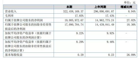 報告期內,公司實現營業收入322,458,169.37元,較上年同期上升8.94%;營業成本264,893,292.88元,較上年同期上升8.38%;實現凈利潤19,005,972.67元,較上年同期上升27.02%。 報告期內,公司與上游供應商、下游客戶進行充分溝通和協商,原材料價格的上漲并未對公司業績產生持續性的負面影響,公司堅定發展信心,始終堅持以市場為導向,不斷進行技術革新及工藝改進,確保產品質量,加強與客戶的深度合作,上半年銷售業績較好;營業成本上升的主要原因是生產紙板、紙箱和紙管所用的原材料(瓦楞紙、箱板紙)價格上漲,導致主營業務成本上升;同時,由于受宏觀經濟環境的影響,包裝行業的傳統下游領域主要包括食品飲料、醫藥日化、通訊器材、家用電器、電子信息制造、快遞等諸多行業。總體上來看,這些行業大多數都伴隨著我國宏觀經濟環境數十年的高速發展實現了野蠻生長,但近兩年來受多重因素影響,各行業增速均不同程度的放緩。 面對較為嚴峻的市場形勢,公司堅持以安全生產經營為中心,以創新客戶需求為導向,通過公司管理團隊和全體員工的共同努力,確保了公司經營的穩定發展: 一方面,公司以專業的態度繼續專注于紙品包裝行業,切實圍繞客戶需求這一導向提供具有針對性個性化的產品和服務;通過建立標準化、流程化的的管理流程以及信息管理系統,提升管理效率; 其次,公司通過不斷的探索與實踐,在鎮江揚中、南通海安、揚州寶應、鹽城阜寧、宿遷、陜西白水等區域設立了六家全資子公司,逐步建立起“標準化紙品工廠”,形成規模優勢,擴大市場份額,提升可持續發展的競爭能力; 再次,公司加大對投資者關系管理方面的投入,在合法合規的前提下,邀請投資者來公司實際考察、調研,充分與投資者溝通交流,使得投資者可以對公司經營、管理、成長前景等方面充分了解,也會聽取投資者提出的對公司發展有利的建議和意見。 另一方面,公司通過收購灌云利民再生資源科技發展有限公司100%股權和南通弘祥包裝材料有限公司100%股權,有效避免同業競爭,減少關聯交易。 灌云利民再生資源科技發展有限公司200萬噸再生包裝原紙項目一期工程正在建設中,預計該項目在下半年能夠正式投產。該項目投資后,公司商業模式將會發生重大變化。公司將從目前主要從事中高檔瓦楞紙板、瓦楞紙箱的研發與設計、生產、銷售及服務轉變成為以牛皮箱板紙、高強瓦楞原紙等中高檔包裝用紙生產、銷售為核心,同時涵蓋產業鏈上游廢紙采購業務,中游牛皮箱板紙、高強瓦楞原紙生產、銷售業務,以及下游瓦楞紙板、瓦楞紙箱等綠色包裝的研發、設計、生產、銷售及服務等業務板塊,并輔以污水處理、熱電聯產等基礎設施為一體的資源綜合利用企業,實現了產業鏈縱向一體化,業務結構將更加合理。 報告期內及報告期末至報告披露日,公司產品或服務未發生重大調整,核心團隊、主要客戶和供應商、銷售渠道、成本結構、收入模式均未發生重大變化。